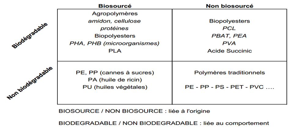 Les professionnels du secteur distinguent une première génération qui produit du plastique à partir de matières alimentaires – ce qui suscite des débats éthiques – d’une deuxième, pour des produits « qui ne sont pas fabriqués à partir de produits alimentaires nobles, mais conçus à partir de coproduits (épluchures de légumes, enveloppes de céréales…).