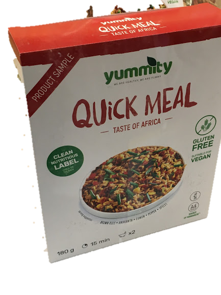 Quick Meal de Yummity qui fait le choix d’afficher les informations essentielles et la liste des ingrédients principaux sous l’image du produit.